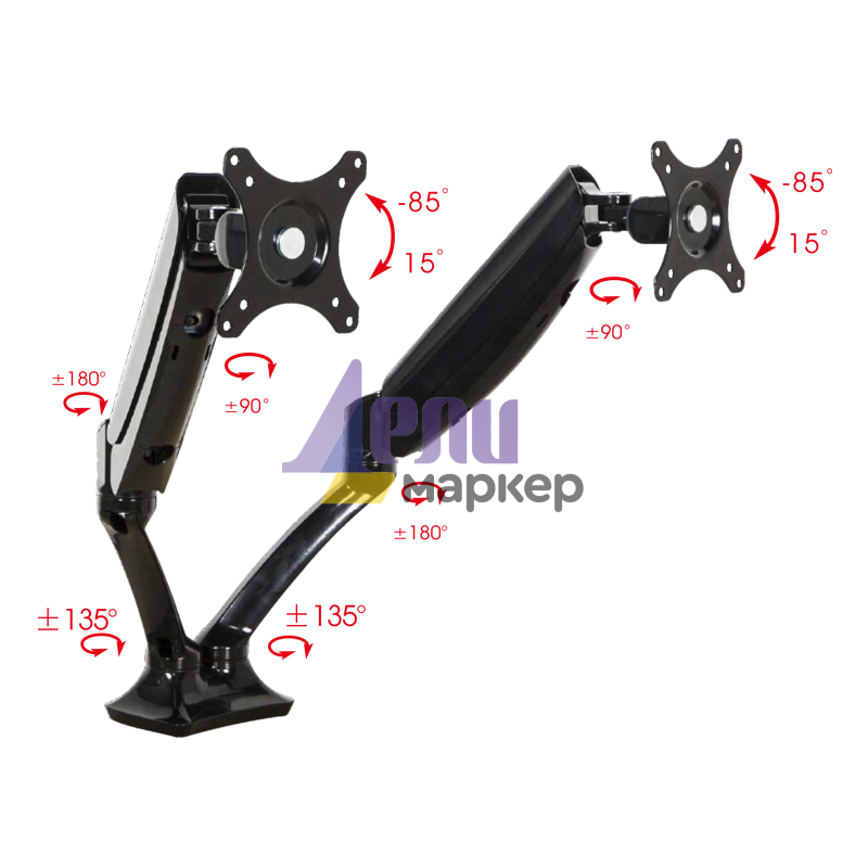Стойка за два монитора с газов амортисьор Carmen CR-502-2 - черна