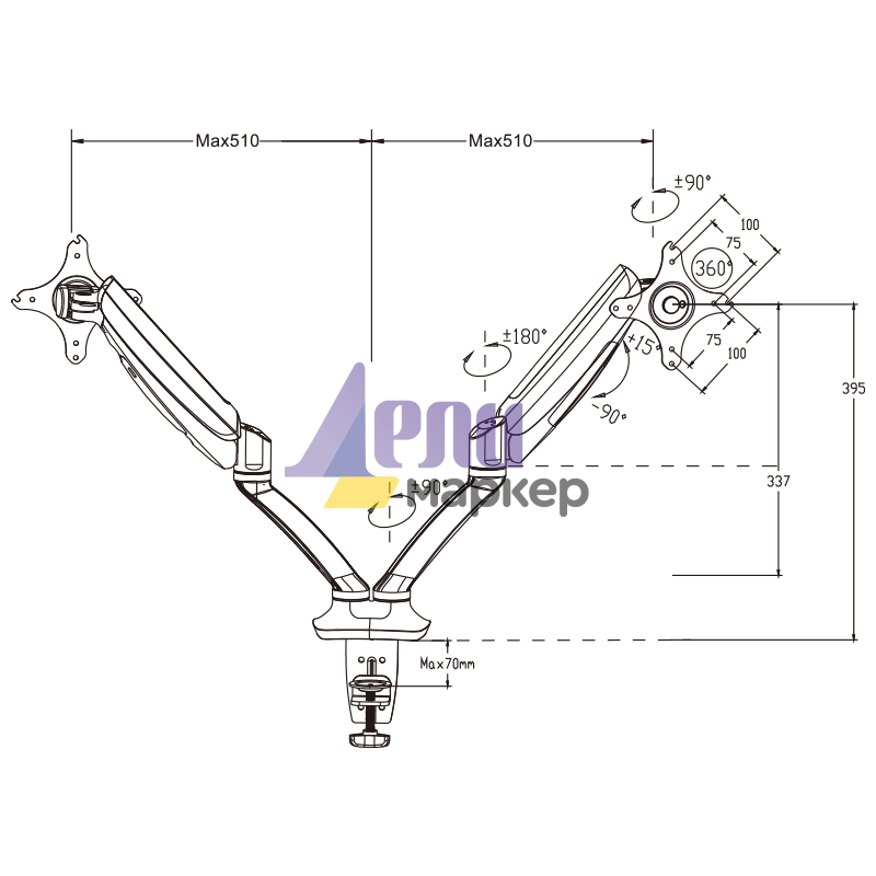 Двойната стойка Carmen CR-502-2 е иновативно и практично решение, за тези които използват 2 монитора. Основата се захваща към плота на бюрото, а всяко от рамената може да се върти настрани или да се накланя вертикално нагоре и надолу, под различен ъгъл. Подходяща е за екрани с размери от 17 до 30 инча. Пълна информация за размерите и характеристиките на модела ще намерите в таблицата в таб/поле "Техническа информация".