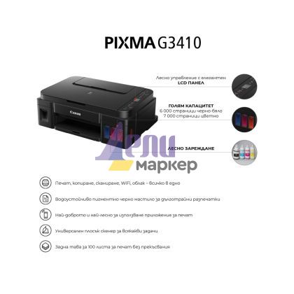 Мастилоструйно многофункционално устройство Canon PIXMA G3410 All-In-One, Black
