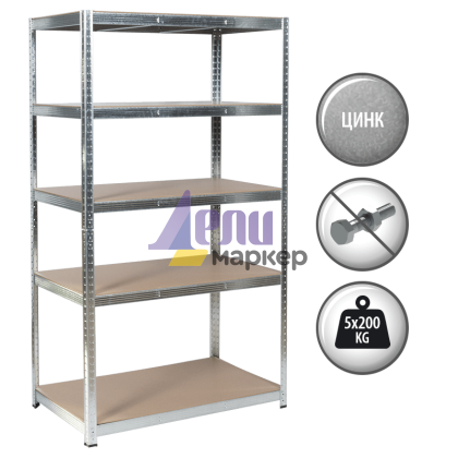 Метален стелаж Carmen CR-1018 - 180х100х60 см, до 200 кг на рафт - цинк