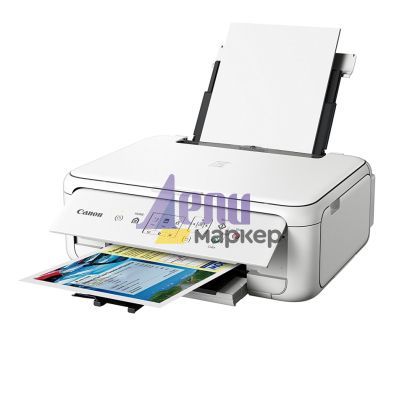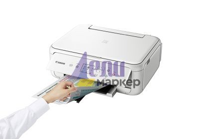 Мастилоструйно многофункционално устройство Canon PIXMA TS5151 All-In-One, White + Canon Photo Cube and Frame + PP-201 5x5” Photo Paper Plus Glossy II (40 sheets) - Creative Pack, Orange