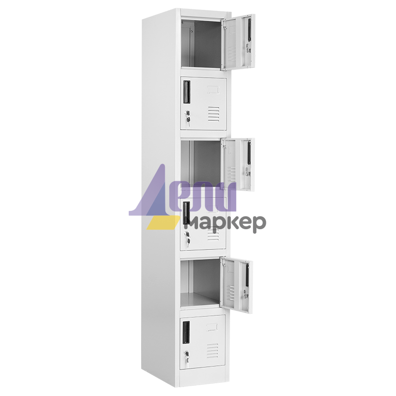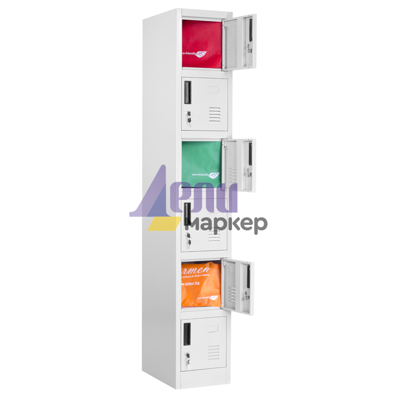 Метален шкаф CR-1265 J от серията метални шкафове на Carmen разполага с шест отделения с метални вратички към тях. Метален гардероб от този тип позволява съхранение на малък багаж, лични вещи и документи. Серията от метални мебели с марка Carmen включва офис контейнери, метални гардероби за съблекалня, метални контейнери, метални шкафове, предназначени за документи, кардекс и други. Пълна информация за размерите и характеристиките на модела ще намерите в таблицата в таб/поле "Техническа информация".